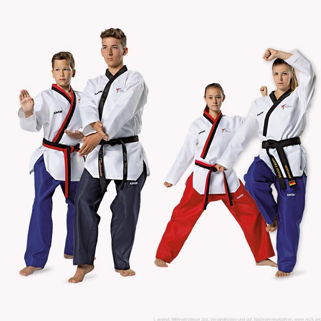 Seragam Taekwondo (Dobok) Standar Seragam Taekwondo terdiri dari Dobok (baju dan celana) dan Ti (Sabuk). Berawal warna dobok hanya putih, dan pada tahun 1970-an, mulai dibedakan seragam bagi penyandang sabuk hitam (DAN) dengan memakai kerah leher Hitam. Model dan bentuk seragam Taekwondo mengilhami dari pakaian tradisional Korea yang disebut dengan Han Dobok. Han Dobok terdapat 3 unsur bentuk yaitu lingkaran (Won), persegi…